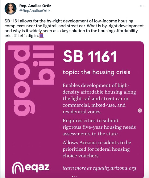 Now, Kaiser has found allies in some of the Legislature’s most progressive members, like Reps. Analise Ortiz and Oscar De Los Santos, who joined him at a press conference last week to support three bills that include small pieces of Kaiser’s original bill. In a Republic op-ed, De Los Santos touted the bills’ ability to lower housing costs while lessening emissions through improved density.