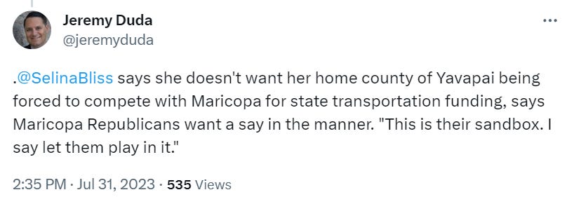 If Maricopa County voters want to tax themselves for roads — or not — that should be a question for Maricopa County, not the Legislature.