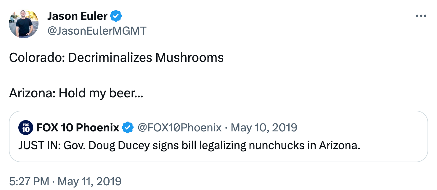 No time to spore: Recipients of the $5 million lawmakers doled out last year for psilocybin research may only have a few months to use the funds, Axios’ Jeremy Duda writes. The state’s health department has to award the grants by Feb. 1, but some officials say that money has to be spent by the end of the fiscal year on June 30. Legislators didn’t make the funds non-lapsing, but Arizona Rep. Kevin Payne, who pushed for the magic mushroom funding, said he wants to introduce a law that would extend the deadline.