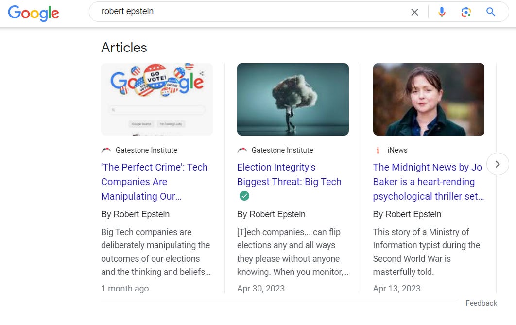 Reporters better than us and academics smarter than us have spent a lot of their valuable time debunking Epstein’s research on Google’s alleged election interference. We won’t bother to go down that rabbit hole, other than to say it is easily debunkable.