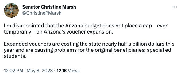 As we noted at the time, the Republican majority in the Legislature isn’t willing to negotiate on vouchers. Democrats know that, but in the face of hostile opposition from school groups, they’re making a lot of noise about demanding any budget defund the voucher expansion. Attorney General Kris Mayes is joining the opposition, demanding Hobbs and lawmakers “go back to work and produce a budget that’s in the best interest of all Arizonans.”