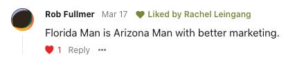We love seeing your comments on our newsletter, even the ones that are critical of our work. (Become a paying subscriber so you can rant at us in our comments section, please!) And we’re starting to see more of them as the newsletter grows and as people become more acquainted with Substack. Here are a few of the comments we loved recently: