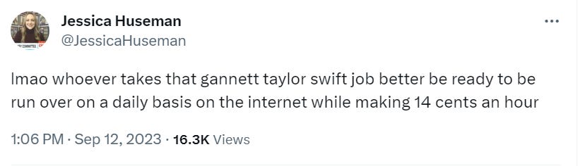 We were going to make today’s laugh about the new Taylor Swift reporter position that USA Today is creating, pissing off every single reporter in America, apparently.