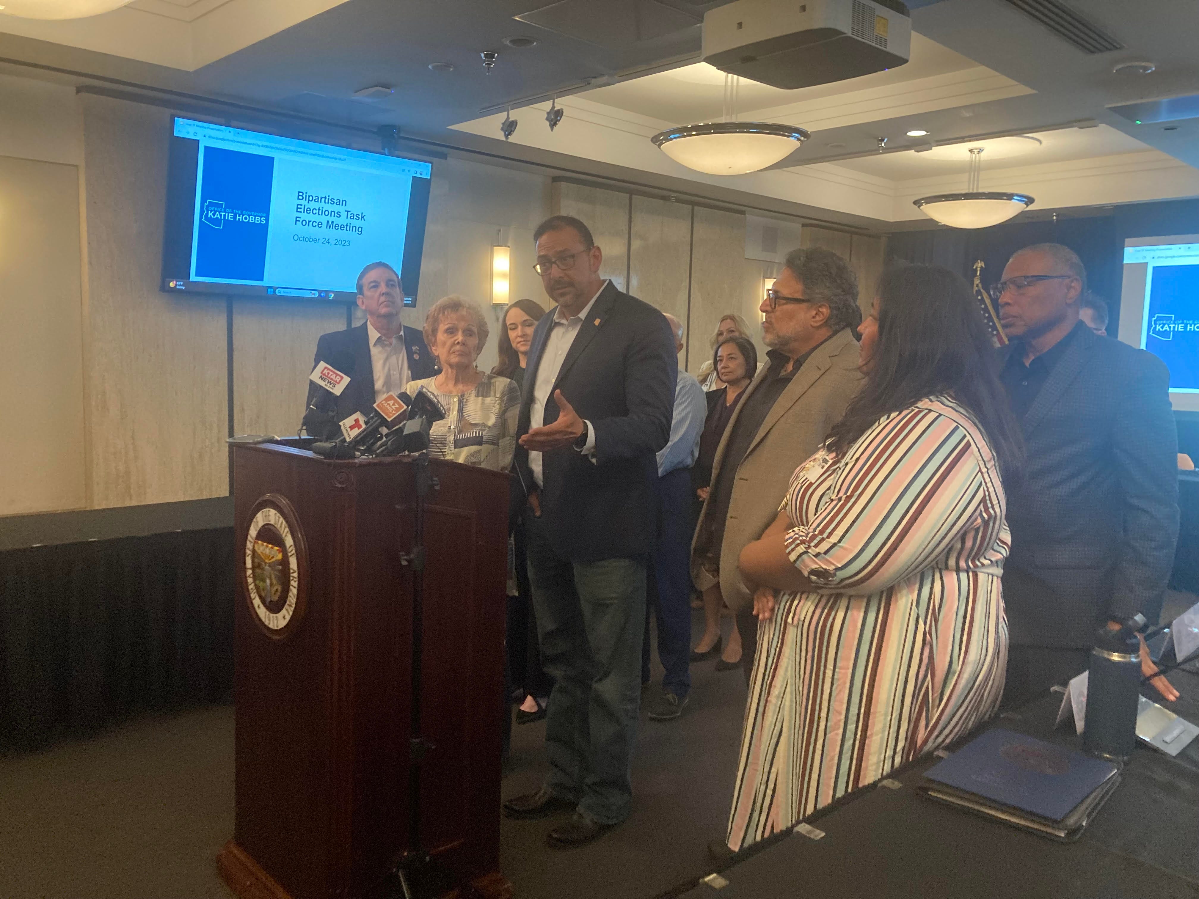 “When we lowered that (recount threshold) to half a percent, we did it based on falsehoods and conspiracy theories and lies about our election systems. They were running just fine before we lowered that standard,” task force member and Secretary of State Adrian Fontes told reporters yesterday.