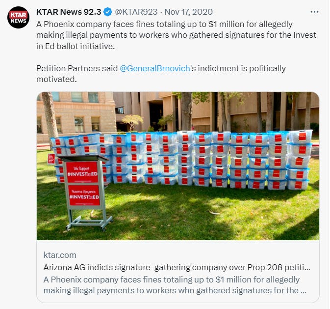 It’s a free(ish) market: Citizen initiatives scored a huge victory against the Legislature this week when the Arizona Supreme Court ruled that initiatives can use other bonus-pay structures for petition circulators, as long as they don’t pay per signature, which the Legislature made illegal a few years back amid claims it leads to fraud, Pitzl reports. Political candidates, of course, were not included in that law banning paying circulators on a per-signature basis. Meanwhile, Prop 211, the anti-dark-money initiative voters approved last year, survived a legal challenge in Superior Court that was filed by the Center for Arizona Policy and the Arizona Free Enterprise Club, Arizona’s Law blog reports. The plaintiffs could still appeal, and there’s a separate challenge happening in federal court.