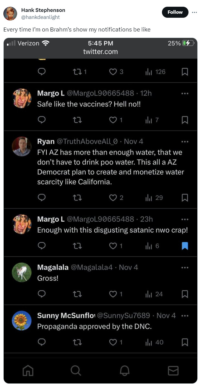 Poo water everywhere: The National Park Service is shutting down three Lake Mead hot springs after finding fecal bacteria in the water Monday, the Republic’s Rey Covarrubias Jr. reports. Karen Peters, head of the Arizona Department of Environmental Quality, explained on 12News’ “Sunday Square Off” how the utilities will keep poop out of your drinking water as the state anticipates relying on more recycled wastewater in the future. And Hank joined the show after Peters’ interview to discuss Republicans’ threats to sue Gov. Katie Hobbs over tax rebates, but the water commentary trickled into his Twitter replies.