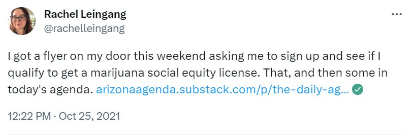 Specifically, Prop 207 promised to create a “social equity license” lottery “to promote the ownership and operation of marijuana establishments … by individuals from communities disproportionately impacted by the enforcement of previous marijuana laws.”