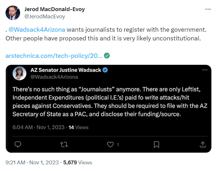 That’s not… how taxes work: The Arizona Mirror’s Jerod MacDonald-Evoy serves up today’s political mystery, entitled: “Whose ballot did Justine Wadsack post online?” which is a good question considering her residency issues. The Tucson Sentinel’s Dylan Smith notes it was almost certainly her husband’s ballot since he’s registered at the out-of-district address where Wadsack definitely doesn’t also live. And the Republic’s Laurie Roberts has the 30,000-foot view on Wadsack’s insistence it’s her ballot.