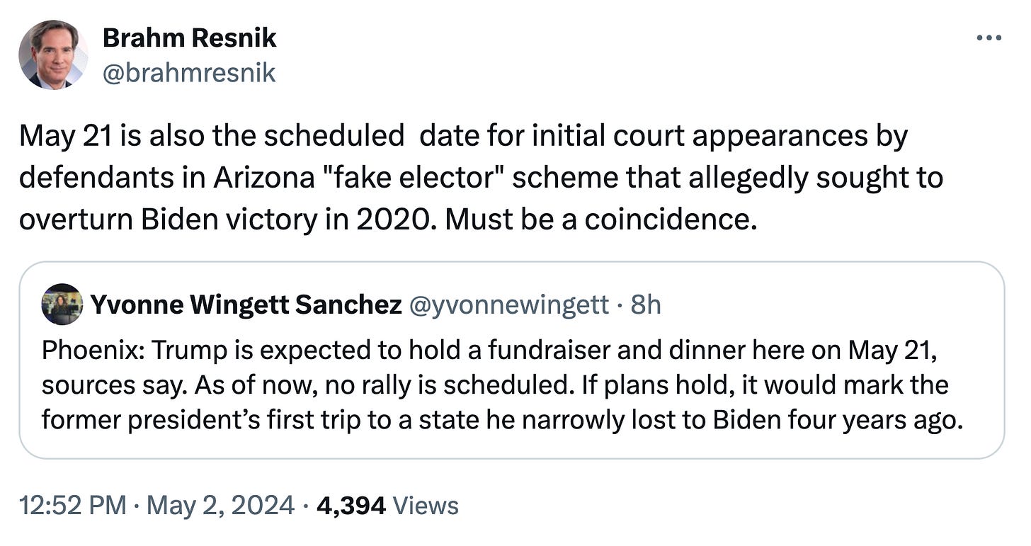 If at first you don’t succeed: Lawyers for congressional hopeful Abe Hamadeh are again asking a judge to overturn the results of the 2022 attorney general’s race that Hamadeh lost by 280 votes, this time because they claim Maricopa County didn’t test its ballot printers, Capitol Media Services’ Bob Christie reports. This is Hamadeh’s fourth challenge of the election, even though election challenges have to happen within five days of when an election is certified.