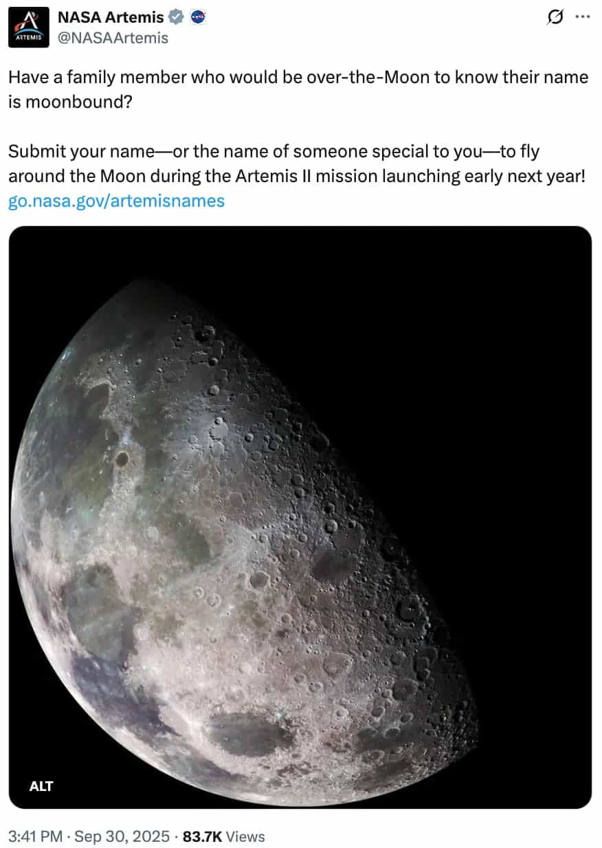 In September, NASA announced the name of the Orion capsule for the Artemis II Mission will be Integrity. The goal of their journey to space is to set up a future mission for humans to touch the moon again.