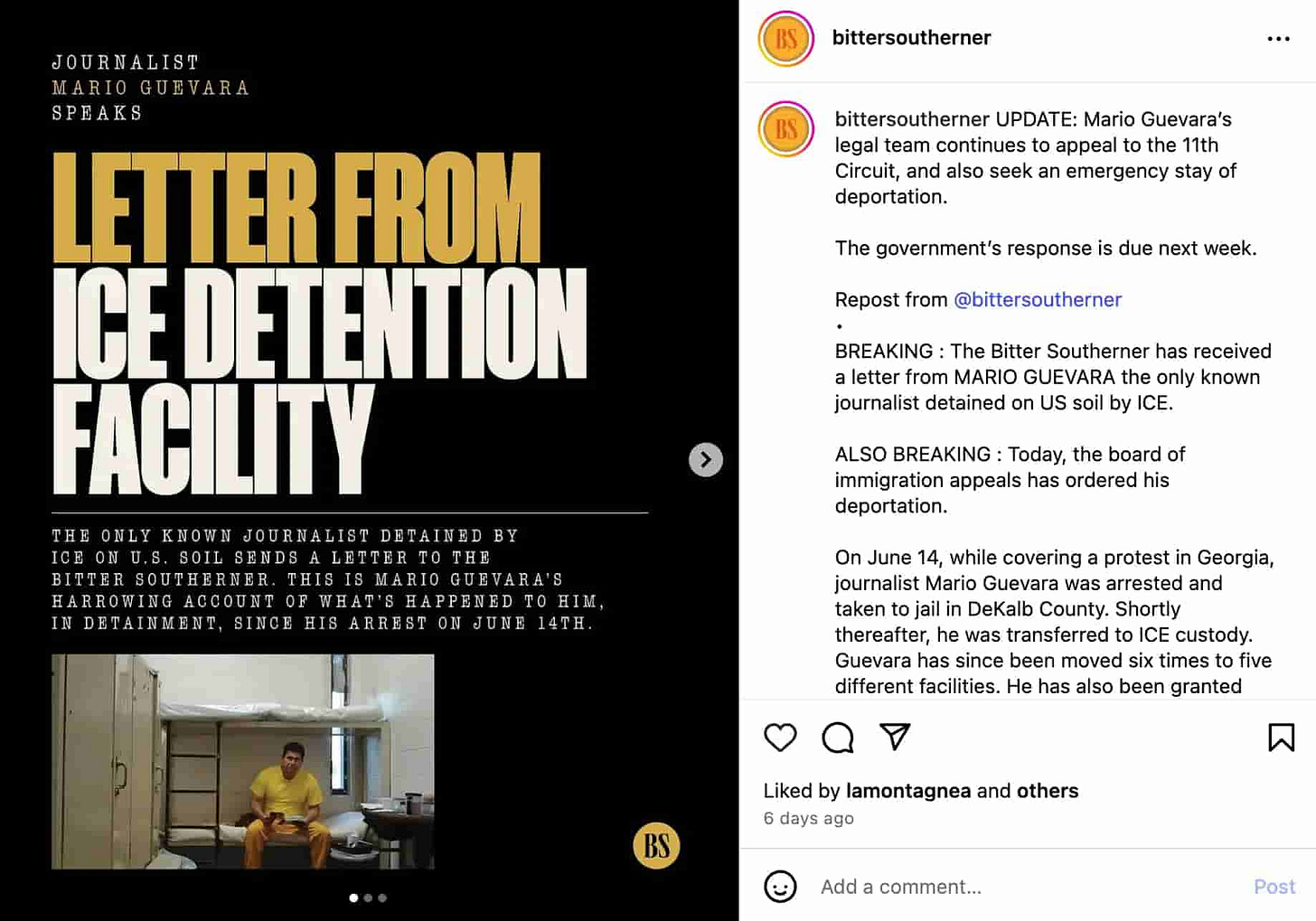 Meanwhile, journalist Mario Guevara was deported to El Salvador after being held in an ICE detention facility since June. Guevara was arrested while covering a protest in Georgia, a state where he lived for over two decades with his family. He had work authorization, a Social Security number, paid taxes and was eligible for lawful permanent residency.