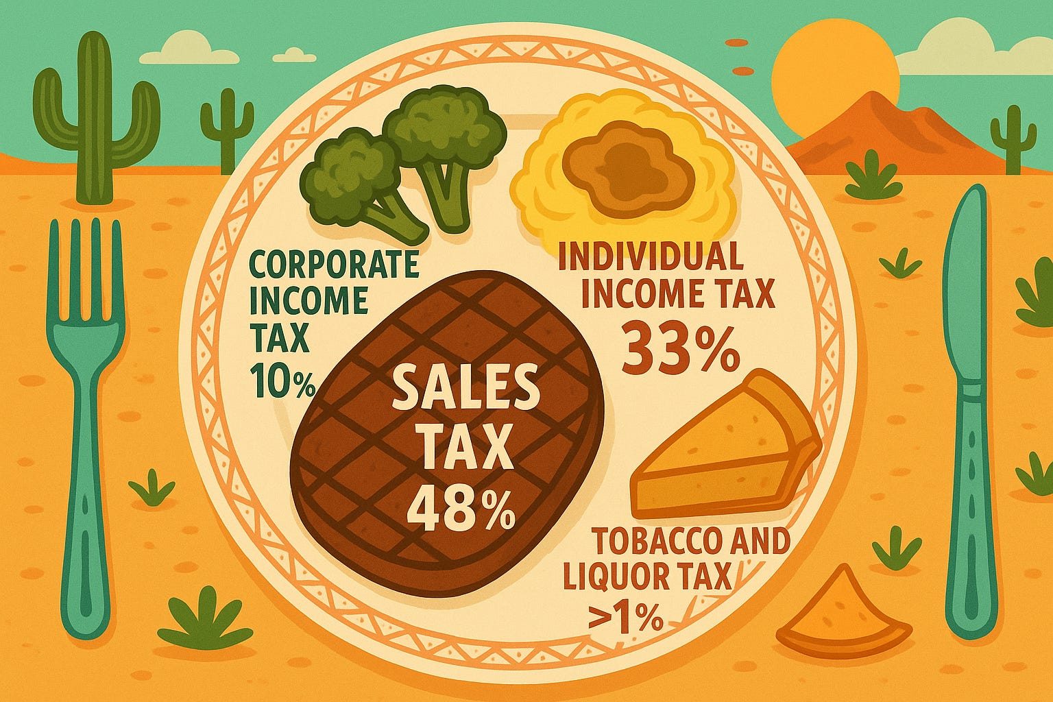 And we love a good metaphor, so we’re explaining Arizona’s greatest tax revenue sources as a steak dinner: There’s the meat, the potatoes and a little dessert.