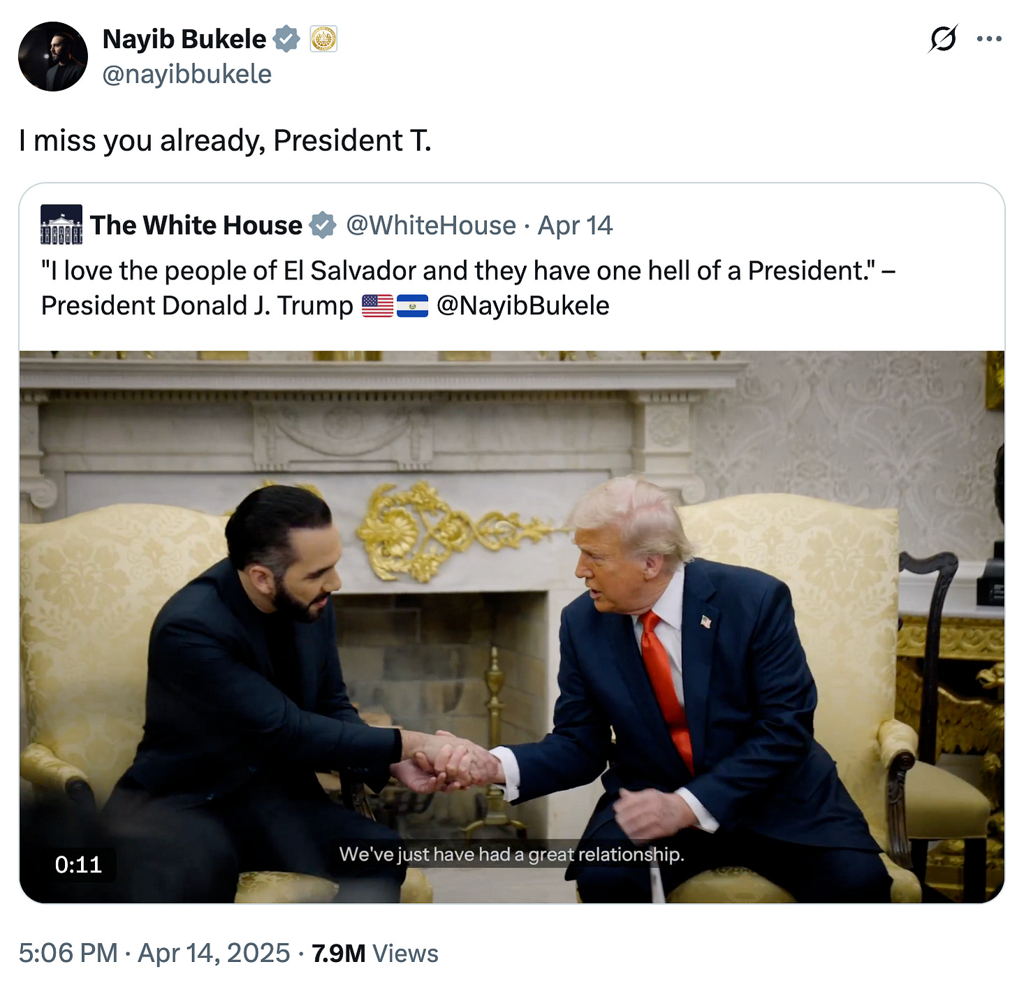 Constitutional crisis: Despite a unanimous U.S. Supreme Court decision that President Donald Trump must “facilitate the return” of a man who was erroneously deported without due process to the notorious El Salvadoran torture prison to which he was sent, Trump has done nothing to facilitate Kilmar Abrego Garcia’s return, his lawyers argued, per ABC news. Trump and the president of El Salvador offered a collective shrug at the Supreme Court in a meeting Monday, NBC notes. Legal scholars say this is the definition of a constitutional crisis. Meanwhile, Trump is now threatening to deport AMERICAN CITIZENS to El Salvadoran torture prisons.