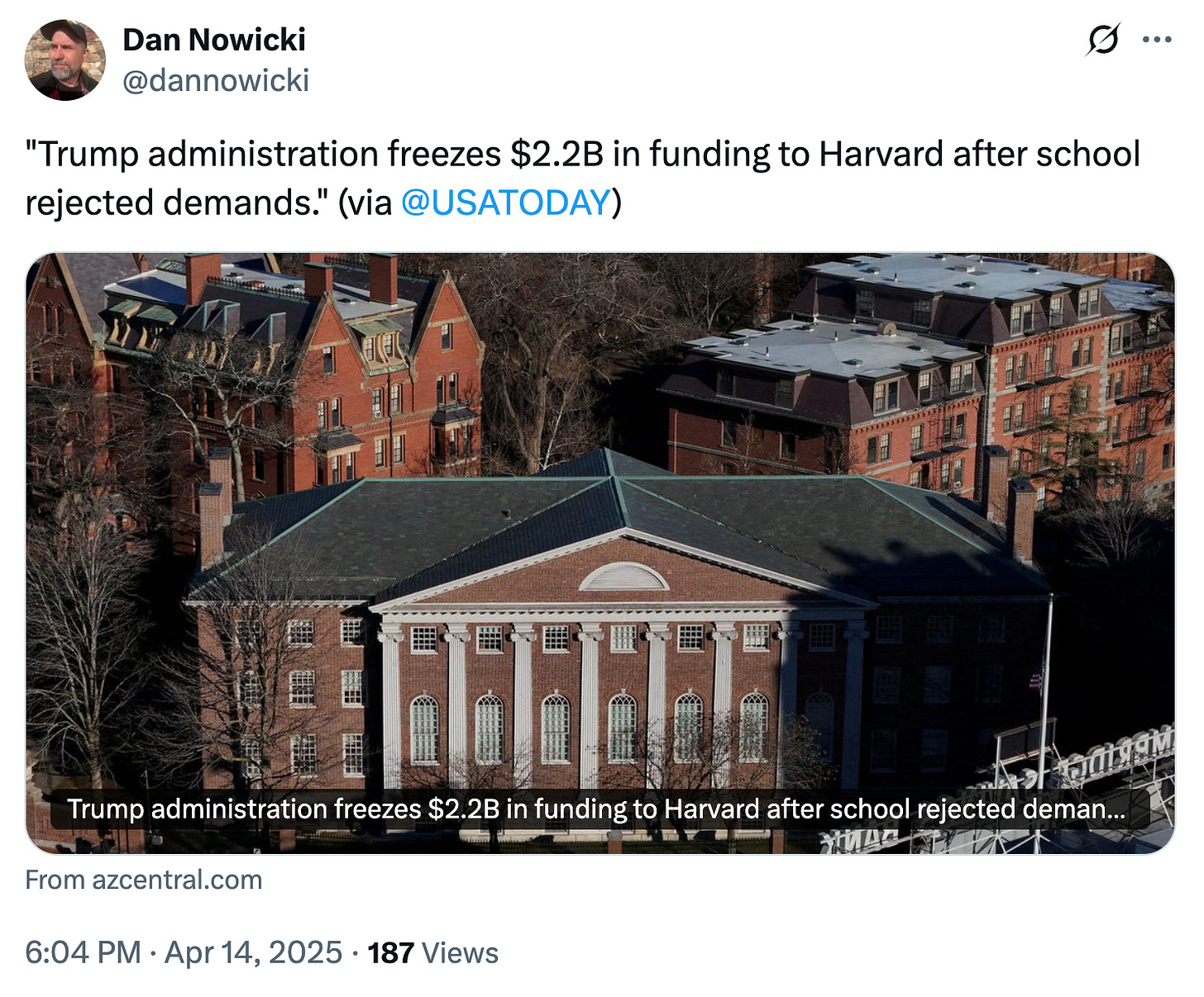 One more for good measure: A judge in Vermont is openly questioning whether the Trump administration would even follow his orders if he tells them to return a Tufts University student who had written a pro-Palestine oped and was nabbed off the street by plainclothes immigration officers. Rumeysa Ozturk is currently being held in a Louisiana detention center but the judge is considering ordering her back to Vermont, where she was previously detained, per USA Today.