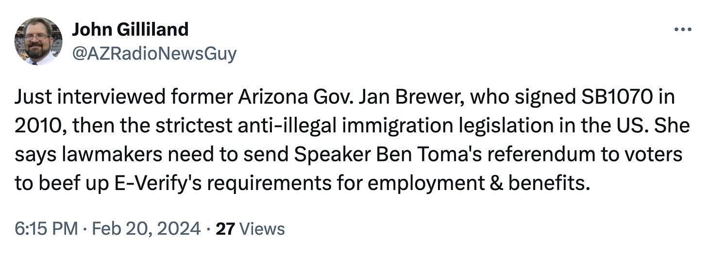 But perhaps the biggest difference between SB1070 and HCR2060 is the latter would require a vote of the people on the 2024 ballot to become law, not just a vote from the politicians. Proposing a ballot referral allows lawmakers to skirt the governor’s veto stamp. But far more interesting, it puts the question to Arizona voters.
