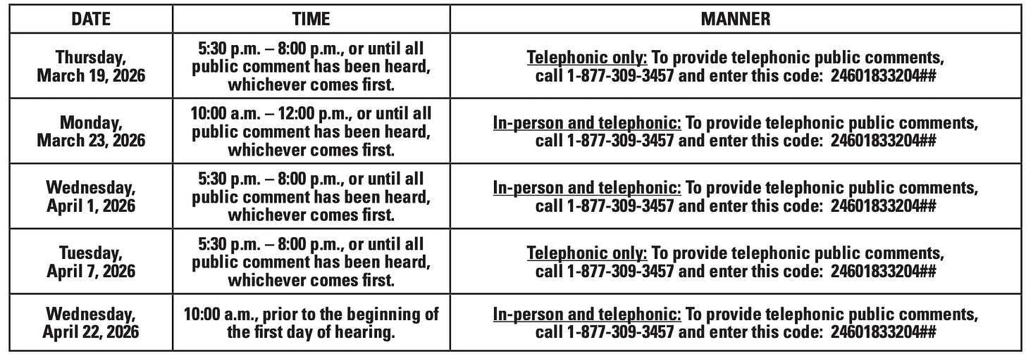 Here are the commission’s public comment meeting dates for the APS rate case: