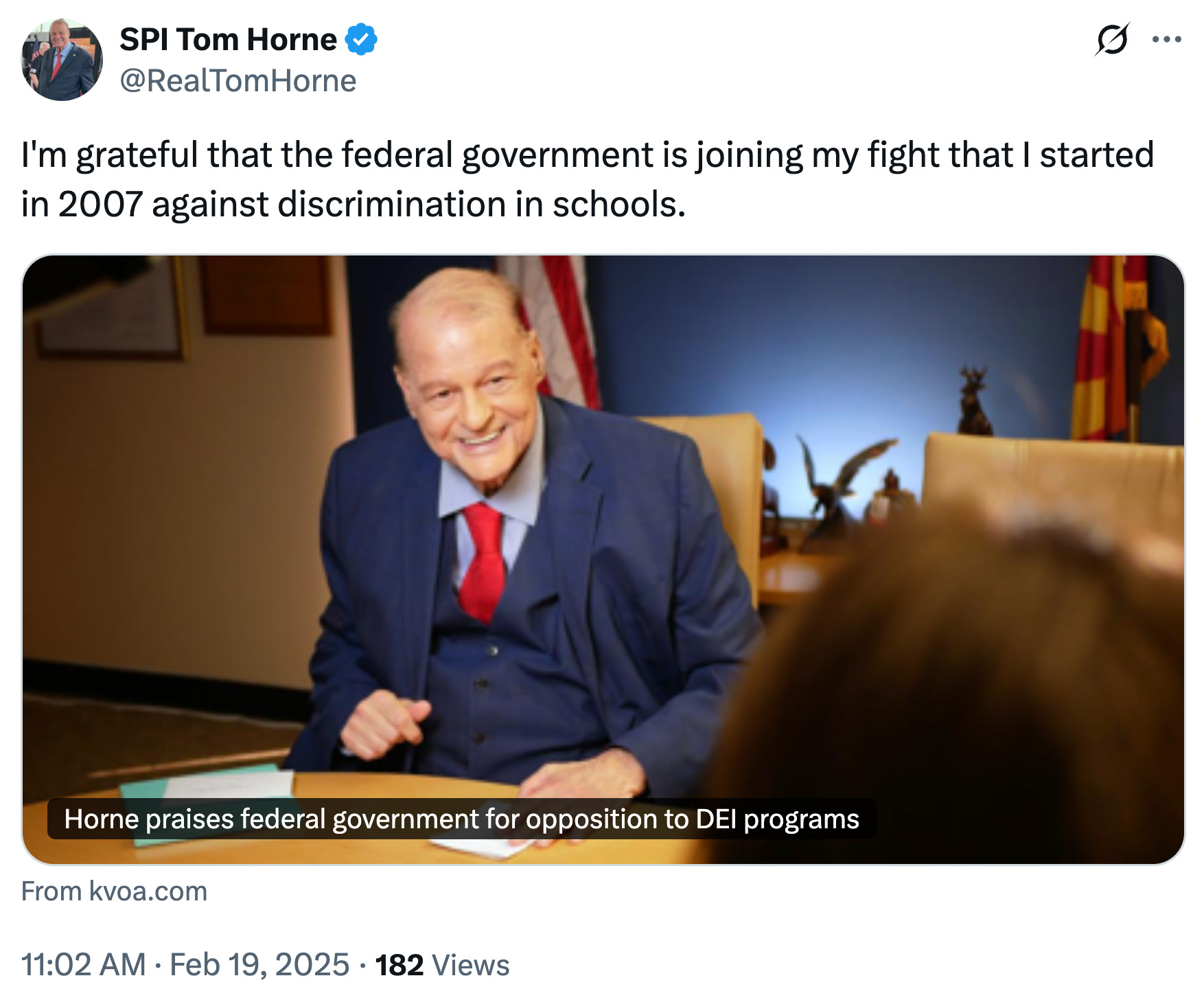 Horne compares his current fight against DEI to his fight against the Mexican American Studies program at TUSD. The courts eventually struck down the law banning that program, saying it was enacted with “racial animus.”Readers of the Education Agenda will be familiar with the backstory on all this by now, but Arizona Agenda readers might need a cheat sheet for what’s happening here.
