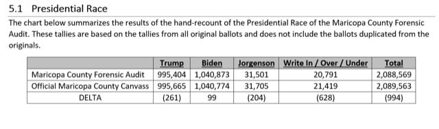 In fact, the audit claims Biden actually won with a larger margin than the county had previously tallied. Trump lost 261 votes in the Cyber Ninjas hand recount of all 2.1 million ballots cast in the county, while Biden picked up 99 votes in the recount.
