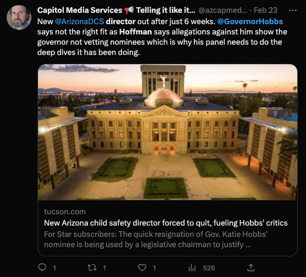 Last week, Hobbs fired her press secretary over an offensive tweet that went viral. The office then announced a full “staff reorganization” that included firing the spokesperson’s boss, creating a new deputy chief of staff position and changing titles for several other employees. The reorganization was executed while Hobbs was out of town.