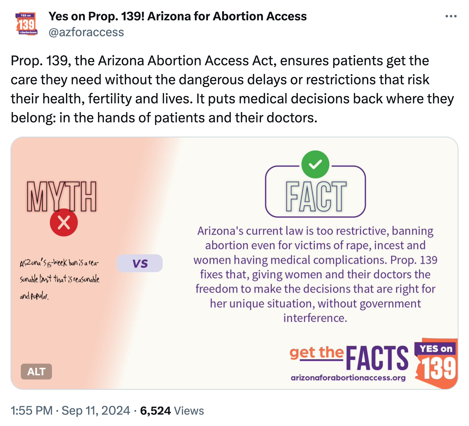 Proposition 139 would establish a fundamental right to abortion by amending Arizona’s Constitution. This Act would legalize abortion until fetal viability with exceptions regarding the health of the pregnant person.