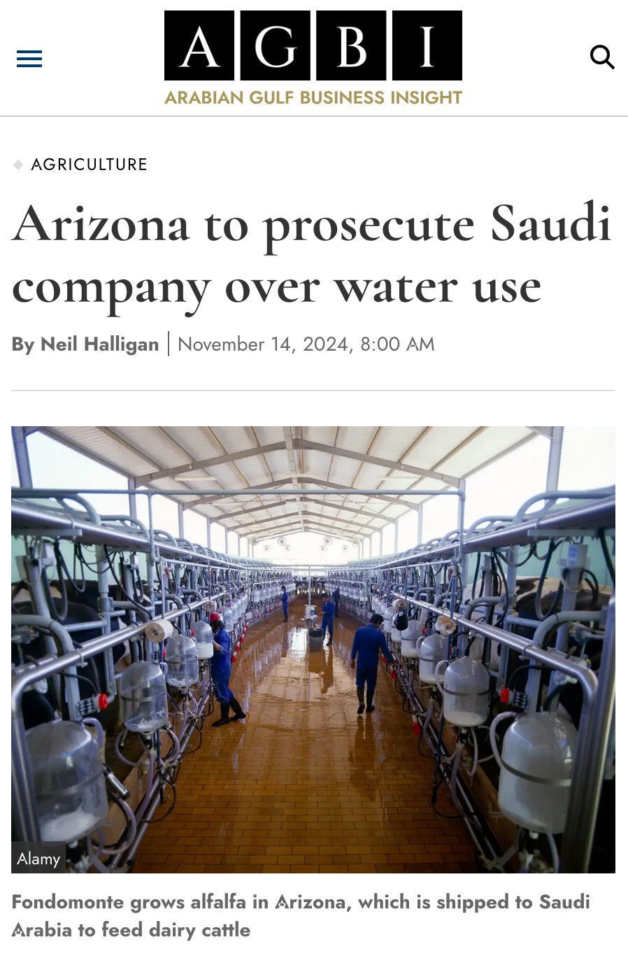 She’s been taking those same moves into a legal brawl with Arizona’s two most infamous megafarms — Saudi-owned Fondomonte in La Paz County and Minnesota-based Riverview in Cochise County — which are enjoying unlimited quantities of Arizona groundwater to grow feed for their dairy cows.